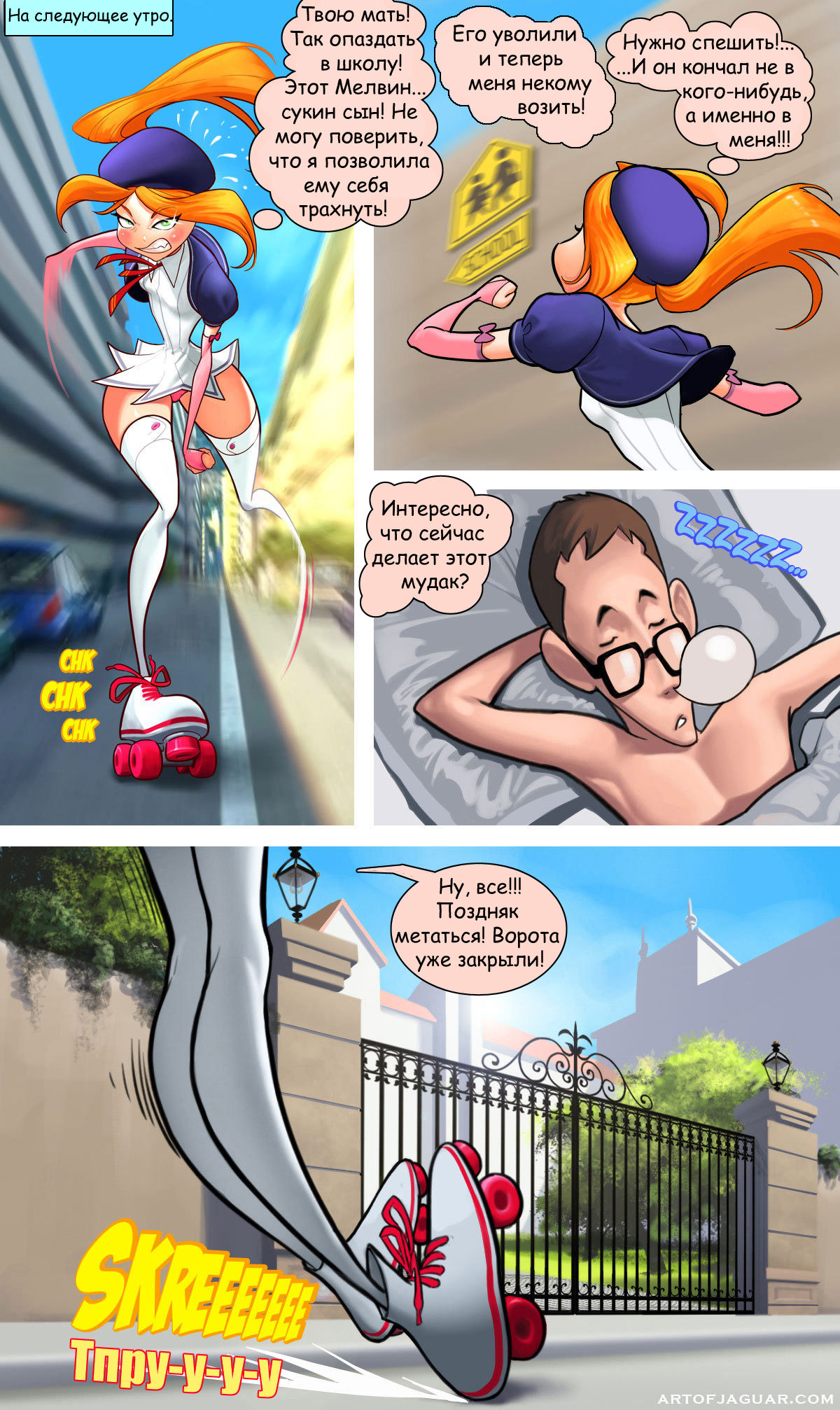 Богатенькая сучка: общая игрушкаБогатенькая сучка: общая игрушка 04.12.2024 Комментарии Нет комментариев Межрассовые, Секс комиксы Алекса попала в неловкую ситуацию — опоздала в колледж как раз в день экзамена. Вариантов нет и закрытые ворота надо как-то обходить. Или — перепрыгивать через стену. Алекса не из робких — она нашла отличный лаз в стене и…попала в ещё более неловкую ситуацию — застряла ровно посередине, в этой дырке! Ни туда, ни сюда, а рядом только бестолковые рабочие. Они оценили ситуацию и решили, что для начала девчонку надо хорошенько увлажнить, чтобы она выскользнула из своей западни. Комиксы по теме: Богатенькая сучка: мечты об АлексеМелвин, водитель семейства Грин, никак не может избавиться от назойливых фантазий о прекрасной рыжеволосой дочурке… Богатенькая сучка: мечты об АлексеМелвин, водитель семейства Грин, никак не может избавиться от назойливых фантазий о прекрасной рыжеволосой дочурке… Доктор СучкаЖена одного доктора явно встала утром не с той ноги – раздражение нарастает с каждым… Секс втроемМуж и его жена (сексапильная блондинка) не могут получить удовольствие от секса друг с другом… Секс-автобусОтличный комикс для тех, кто любит порно комиксы аниме! Обычный день в обычном автобусе –… Месть через сексКлара каждый день мечтает о диком и необузданном сексе - не каждый мужчина способен дать… Стриптизёрша секс комиксДейв обсуждает с двумя стриптизершами планы на сегодняшний вечер, и, конечно же, амплуа девушек, с… Секс с нечистой силойСимпатичная молодая студентка с рыжими волосами отправилась на пикник. Но вместо лесных зверушек и птичек ей… ↓↓↓ Ништячки! ↓↓↓ Поделись комиксом с друзьями! Как вам комикс? Оцените по 10-бальной шкале! (181 оценок, среднее: 7,58 из 10) Добавить комментарий Отменить ответВаш адрес email не будет опубликован. Обязательные поля помечены *Комментарий *Имя * Email * Сохранить моё имя, email и адрес сайта в этом браузере для последующих моих комментариев.