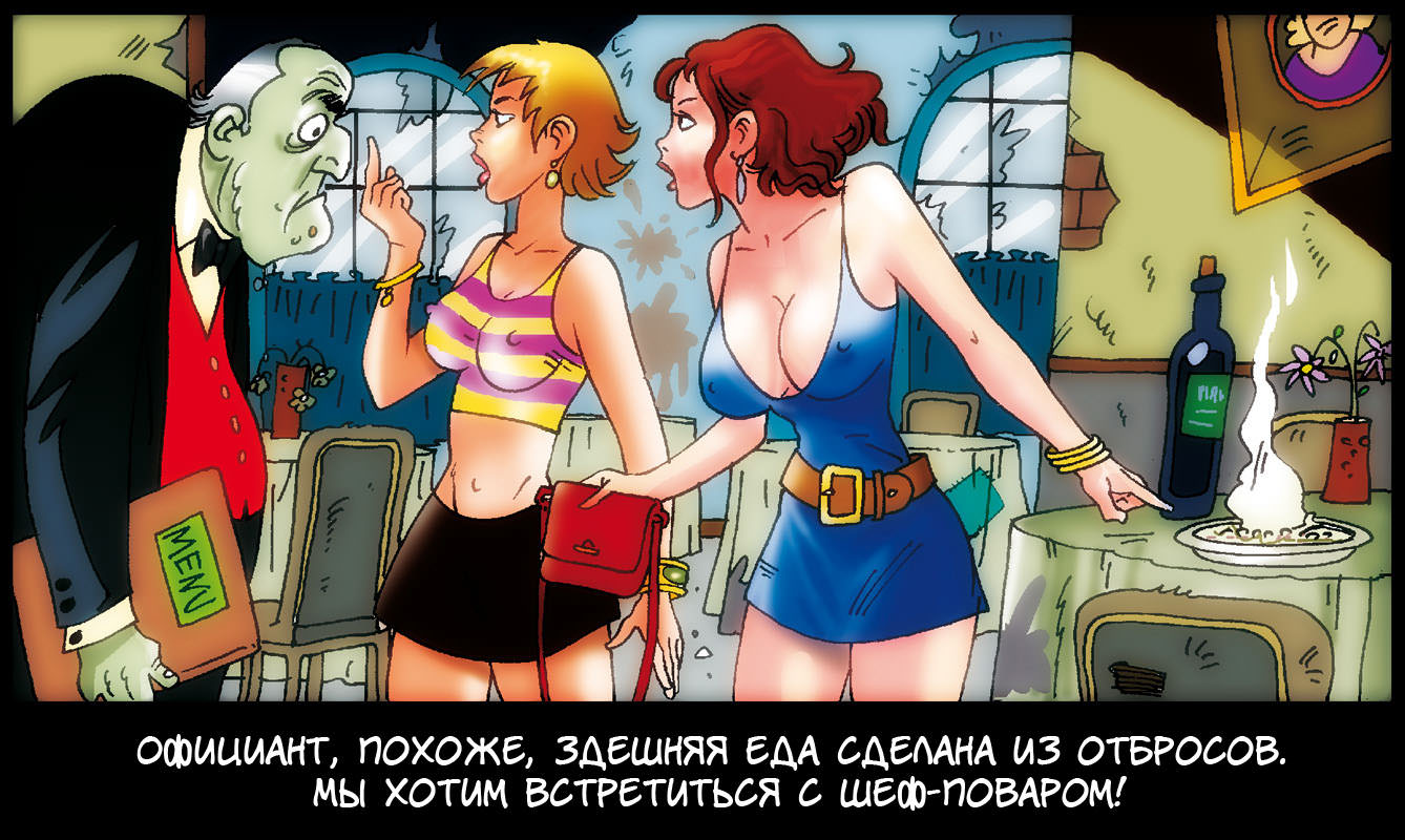 Черный юмор в отеле с привидениямиЧерный юмор в отеле с привидениями 03.08.2024 Комментарии Нет комментариев Секс комиксы Бывают отели, в которых все не так – ужасный интерьер, невкусная еда. Странный запах в ванной и неприятные соседи возле бассейна. Можно взять и уехать, поругаться с портье, позвать администратора или сделать выговор неумелому повару – но иногда лучше не связываться с персоналом. В отель из нашей истории вообще не следовало приезжать – посетительницы просто в шоке! Одна леди попросила горячую курочку и оказалась на кухне не в качестве гостьи, а о других случаях вообще рассказывать страшно… Комиксы по теме: Секс втроемМуж и его жена (сексапильная блондинка) не могут получить удовольствие от секса друг с другом… Секс-автобусОтличный комикс для тех, кто любит порно комиксы аниме! Обычный день в обычном автобусе –… Месть через сексКлара каждый день мечтает о диком и необузданном сексе - не каждый мужчина способен дать… Стриптизёрша секс комиксДейв обсуждает с двумя стриптизершами планы на сегодняшний вечер, и, конечно же, амплуа девушек, с… Секс с нечистой силойСимпатичная молодая студентка с рыжими волосами отправилась на пикник. Но вместо лесных зверушек и птичек ей… ДубляжПара молодых любовников трахается, предаваясь всевозможным ласкам. Вскоре к паре присоединяется матюра-брюнетка, которая просит любовников… БильярднаяСисястая блондинка приходит в местную бильярдную, чтобы узнать все подробности недавнего похищения. Бармен указывает ей… Проход в черный ход ↓↓↓ Ништячки! ↓↓↓ Поделись комиксом с друзьями! Как вам комикс? Оцените по 10-бальной шкале! (39 оценок, среднее: 6,95 из 10) Добавить комментарий Отменить ответВаш адрес email не будет опубликован. Обязательные поля помечены *Комментарий *Имя * Email * Сохранить моё имя, email и адрес сайта в этом браузере для последующих моих комментариев.