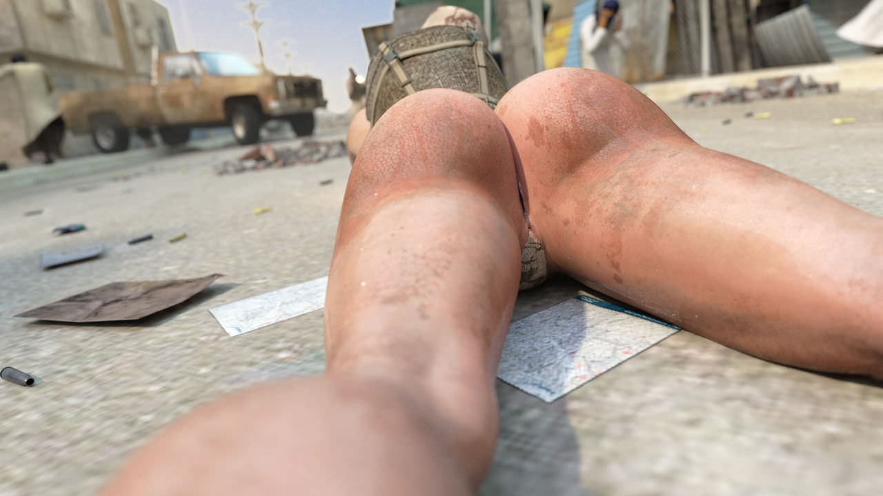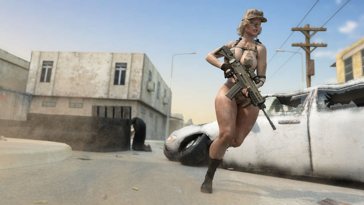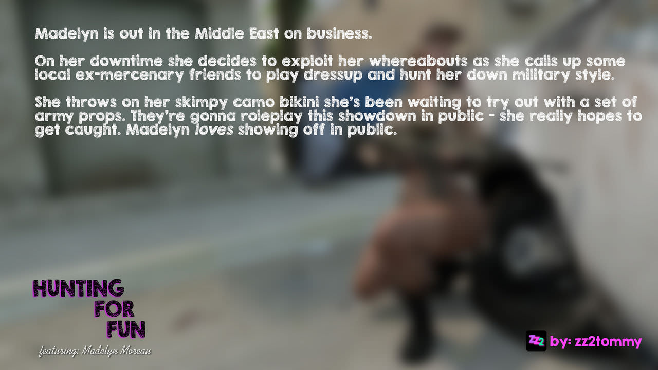 Сисястая красотка Маделин в настоящее время находится на Ближнем Востоке с заданием. На ее работе небольшой технический простой, а потому она решает поиграть со своими друзяками в эротическую игру военной направленности. У нее с собой немного камуфляжной бутафории, которую сисястая телка нацепляет на себя, берет в руки автомат и начинает порно развлекуху с «коллегами». Довольно быстро сучку залавливают, а что с ней вытворяют, вы сами можете представить.