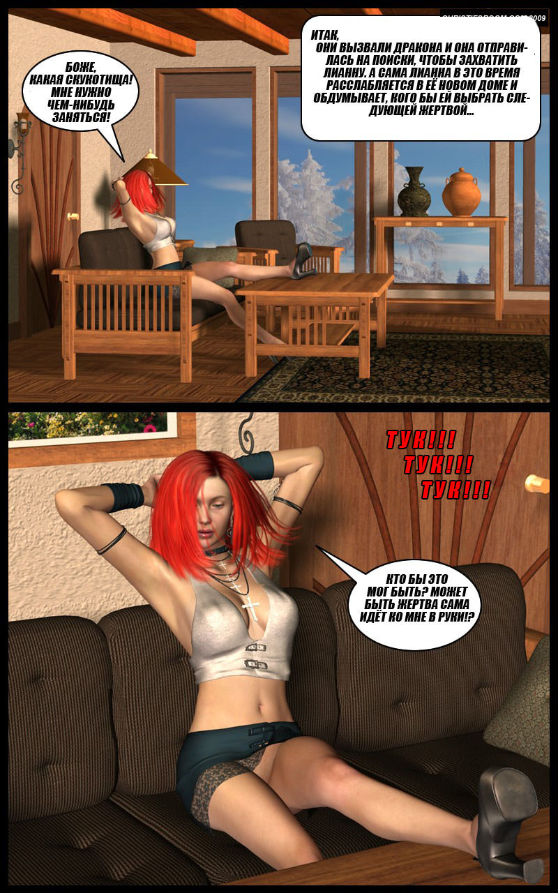 Пока Лиана вовсю насаждается своей новой силой и строит планы на будущее, шлюха-дракон уже вышла на охоту. В дверь Лианы постучались – это оказалась всего лишь продавщица эротического белья. Лиана даже немного огорчилась, но решила примерить новое белье. Оно, к слову, отлично село по фигуре. Подчеркнув все достоинства Лианы – и даже родавщица пришла в восторг. Наверное, придется купить этот комплект. Увы, продавщица не сказала, что предложила Лиане не совсем обычное бельё. Она также не упомянула, что шлюха-дракон может принимать человеческий облик и стучаться в дом под видом простой коммивояжерки.
