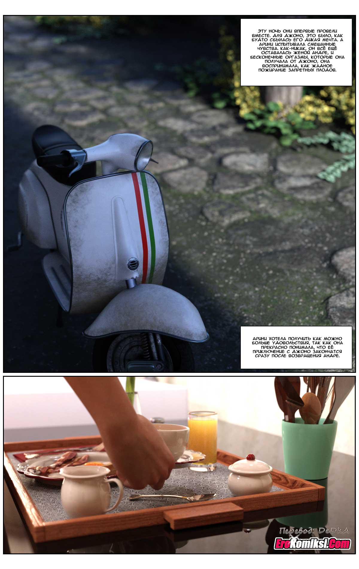 Любовная история. Часть 4.Любовная история. Часть 4. 09.01.2020 Комментарии Нет комментариев Sexwife Андре укатил в командировку и рассказывает там, какая у него классная женушка и о том, какой у них обалденный секс. Его вторая половинка Арини и лучший друг Джоно в это время общаются по видео связи в смартфонах и дрочатся, лаская свои изголодавшиеся гениталии. Но любовникам, само собой, хочется большего, а потому они встречаются в реале и придаются приятным любовным утехам. Огромный член Джоно доставляет массу удовольствия похотливой киске Арини, и оба трахаются, пока Андре ездит по миру. Подольше бы он не возвращался! Комиксы по теме: Любовная история. Часть 1.Андре и Арини вместе относительно недавно, и вроде бы муж и жена нежно любят друг… Любовная история. Часть 2.Арини никак не может отойти от тех сладостных и страстных переживаний, которые она постоянно испытывает… Любовная история. Часть 3.Андре снова уезжает в очередную командировку. Он очень нежно прощается с Арини и просит ее… Любовная история. Часть 5.Андре собирается раньше вернуться из деловой поездки и сделать Арини сюрприз своим приездом. Она постоянно… История трех подругПроблема тех, кто сидит за компьютером в поисках хорошего порно, и тех, кто в этом… Флекс: часть втораяОтдых во Флориде продолжается, Джон веселится с пивом и травкой и не замечает сексуальную жёнушку.… Джон и Джилл: часть 4Кажется, все предыдущие подарки Джона были подсознательно связаны с одним тайным страхом или желанием –… Джон и Джилл: часть 3Сегодня Джон приготовил своей любимой ещё один подарок – сексуальное нижнее белье и бритва –… ↓↓↓ Ништячки! ↓↓↓ Поделись комиксом с друзьями! Как вам комикс? Оцените по 10-бальной шкале! (4 оценок, среднее: 8,00 из 10) Добавить комментарий Отменить ответВаш адрес email не будет опубликован. Обязательные поля помечены *Комментарий *Имя * Email * Сохранить моё имя, email и адрес сайта в этом браузере для последующих моих комментариев.