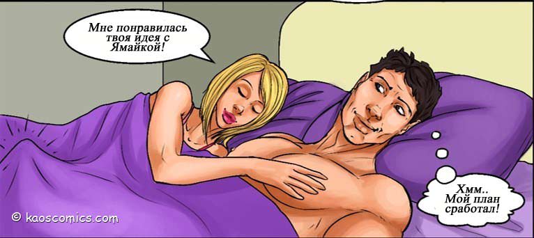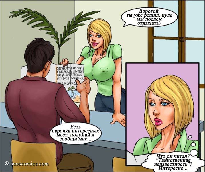 Жена с мужем сидят в офисе и выбирают курорт, на котором проведут свой отпуск. Женушка явно хочет трахаться все время пребывания на курорте, а потому она хочет, чтобы супруг выбрал какое-нибудь уединенное райское местечко. После разговоров об отдыхе блондинка просит мужа пройти с ней в спальню и там оттрахать ее полной программе. В качестве курорта супруги выбирают Ямайку, где в отеле женушке сразу же приглядывается негр из обслуживающего персонала. Однако, давалка и с мужем успевает перепихнуться, и знакомится с другими отдыхающими. В общем, супругов ждет множество порно приключений!