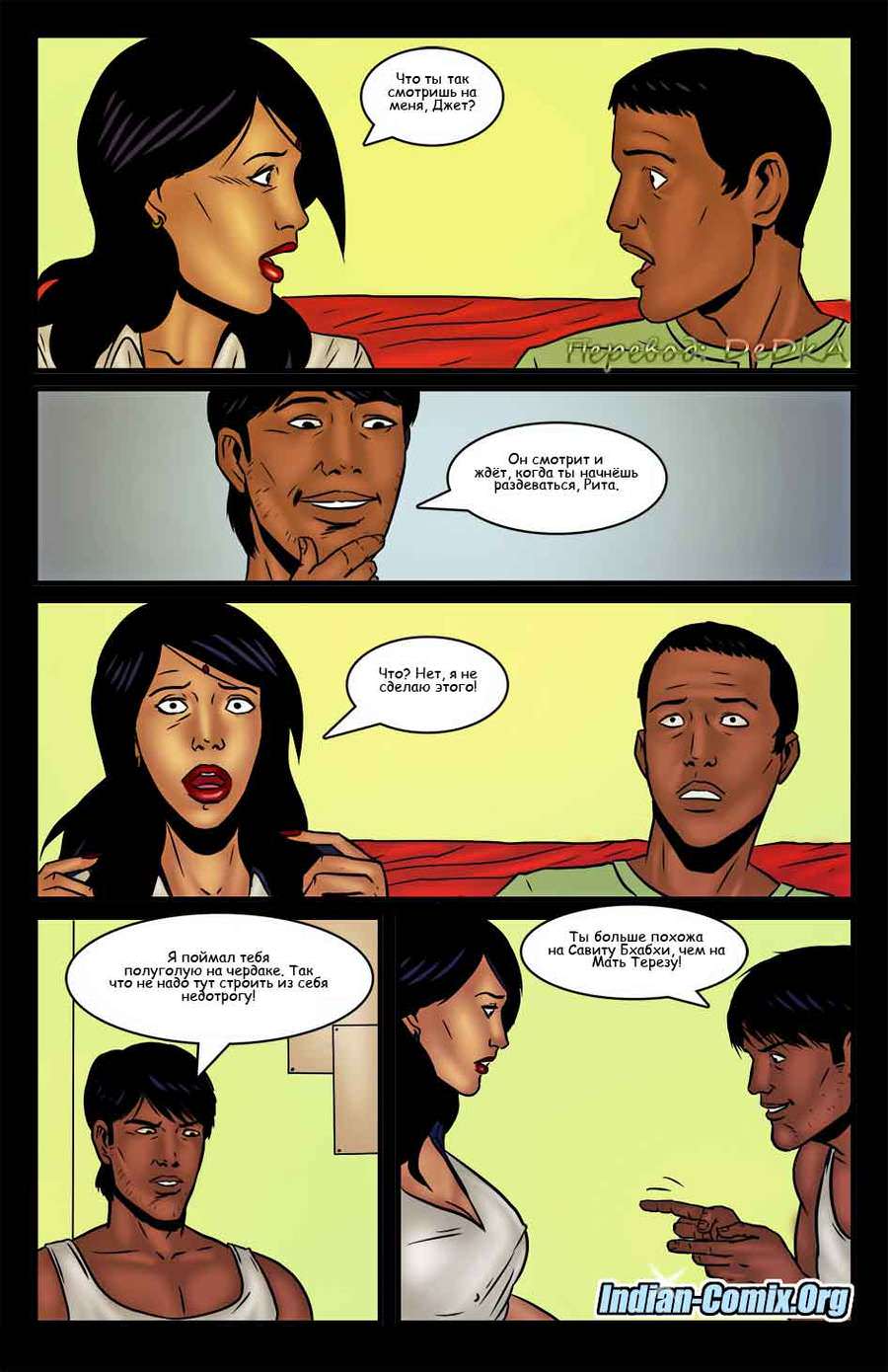 Мисс Рита: часть 20Мисс Рита: часть 20 03.01.2020 Комментарии Нет комментариев Индийские, Секс комиксы Рита всегда была благодарна директору университета – он взял её на работу и не позволил секс-скандалу испортить ей карьеру. Со своей стороны Рита всегда была покорной и исполняла любые прихоти этого мужчины. Сейчас ему вновь понадобилась услуга – на первый взгляд, совсем невинная – Рита нужна его детям в качестве няньки на один вечер. Конечно, добрая Рита согласилась. Немного странно – ведь сыновьям директора 18 и 19 лет, и к одному из них тайком через окно наведалась подружка… Нужна ли им нянька? Комиксы по теме: Мисс Рита: часть 1Самое трудное для Риты – пройти собеседование и стать членом команды преподавателей лучшего университета Индии.… Мисс Рита: часть 3Новый день в университете приносит новые заботы – с самого утра Рита опять отбывает интим-повинность… Мисс Рита: часть 9Наша страстная героиня по-прежнему не может определиться со своими любовниками – выходит, они оба ей… Мисс Рита: часть 2Наша героиня приступила к работе с энтузиазмом и улыбкой – приходится, конечно, часто заглядывать в… Мисс Рита: часть 5Судя по всему, любовные похождения молодой учительницы, поначалу казавшиеся невинными и тайными, скоро станут причиной… Мисс Рита: часть 6Риту ждет волшебное свидание с Санджаем – наша героиня понимает, что в её жизни не… Мисс Рита: часть 8Даже в жизни раскованных красоток бывают скучные вечера – сегодня у Риты как раз такой… Мисс Рита: часть 7Рита оказывается в очень незавидном положении – Рино продолжает угрожать ей тем. Что расскажет всем… ↓↓↓ Ништячки! ↓↓↓ Поделись комиксом с друзьями! Как вам комикс? Оцените по 10-бальной шкале! (35 оценок, среднее: 6,31 из 10) Добавить комментарий Отменить ответВаш адрес email не будет опубликован. Обязательные поля помечены *Комментарий *Имя * Email * Сохранить моё имя, email и адрес сайта в этом браузере для последующих моих комментариев.