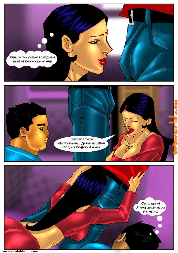 Савита: часть 2Савита: часть 2 14.02.2018 Комментарии Нет комментариев Индийские, Секс комиксы Ашок опять работает весь день, а это значит, что Савите придется проводить выходной в одиночестве. Чем заняться – посмотреть телевизор или прогуляться? Размышления прервал настоящий шок – в окно влетел мяч, эти мальчишки опять развели свои неумелые игры во дворе! Впрочем, Савита замечает, что это уже совсем не мальчишки, а зрелые юноши, которые как раз помогут Савите с делами по дому. По крайней мере, под таким предлогом Савита попросит ребят подняться в спальню. Комиксы по теме: Савита: часть 14Заслуженная победа на конкурсе красоты принесла Савите не только славу и известность, но и некоторые… Савита: часть 10Нашу горячую штучку Савиту как новоиспеченную сотрудницу офиса отправляют на конкурс красоты в качестве представителя… Савита: часть 13Оказывается, Савита не случайно такая раскрепощенная и общительная - на недавнем чаепитии со старой подругой… Савита: часть 17У горячей домохозяйки Савиты наконец-то появился шанс поразвлечься сразу с двумя братьями-близнецами – Ашок уехал… Савита: часть 19Семейная пара вновь приглашена на мероприятие – на этот раз Савита и Ашок стали гостями… Савита: часть 1Роскошная индийская домохозяйка Савита знает, что обладает невероятно сексуальным телом, которое способно свести с ума… Савита: часть 18Подруга просит Савиту о помощи – её сын Шурай никак не может освоить математику, а… Савита: часть 9На следующий день после удачного собеседования Савита решает отправиться за покупками – с её новой… ↓↓↓ Ништячки! ↓↓↓ Поделись комиксом с друзьями! Как вам комикс? Оцените по 10-бальной шкале! (11 оценок, среднее: 7,91 из 10) Добавить комментарий Отменить ответВаш адрес email не будет опубликован. Обязательные поля помечены *Комментарий *Имя * Email * Сохранить моё имя, email и адрес сайта в этом браузере для последующих моих комментариев.