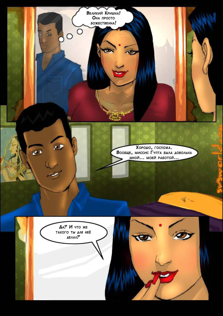 Савита: часть 5Савита: часть 5 17.02.2018 Комментарии Нет комментариев Индийские, Секс комиксы Работнику пришлось уехать, и теперь помогать по дому Савите будет Маной – молодой парень с репутацией отличного работника. Маной убрался на кухне и в спальне, и теперь Савита решает, чем ещё он может быть ей полезен. Маной говорит. Что он неплохой массажист – и все хозяйки, которые нанимали его, были очень довольны. Савита решает не упускать такой шанс и просит Маноя сделать полноценный массажи с маслом – нужно массировать все тело, не пропуская ни одного сантиметра! Маной прекрасно справляется со своей работой, и Савита решает, что может доверить ему кое-что более ответственное. Комиксы по теме: Савита: часть 14Заслуженная победа на конкурсе красоты принесла Савите не только славу и известность, но и некоторые… Савита: часть 10Нашу горячую штучку Савиту как новоиспеченную сотрудницу офиса отправляют на конкурс красоты в качестве представителя… Савита: часть 2Ашок опять работает весь день, а это значит, что Савите придется проводить выходной в одиночестве.… Савита: часть 13Оказывается, Савита не случайно такая раскрепощенная и общительная - на недавнем чаепитии со старой подругой… Савита: часть 17У горячей домохозяйки Савиты наконец-то появился шанс поразвлечься сразу с двумя братьями-близнецами – Ашок уехал… Савита: часть 19Семейная пара вновь приглашена на мероприятие – на этот раз Савита и Ашок стали гостями… Савита: часть 1Роскошная индийская домохозяйка Савита знает, что обладает невероятно сексуальным телом, которое способно свести с ума… Савита: часть 18Подруга просит Савиту о помощи – её сын Шурай никак не может освоить математику, а… ↓↓↓ Ништячки! ↓↓↓ Поделись комиксом с друзьями! Как вам комикс? Оцените по 10-бальной шкале! (10 оценок, среднее: 7,40 из 10) Добавить комментарий Отменить ответВаш адрес email не будет опубликован. Обязательные поля помечены *Комментарий *Имя * Email * Сохранить моё имя, email и адрес сайта в этом браузере для последующих моих комментариев.