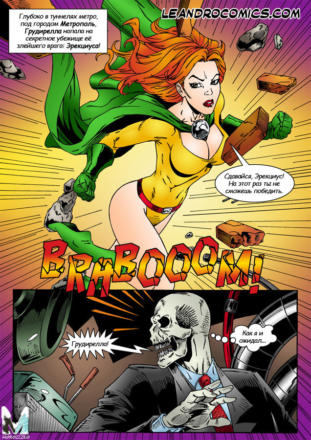 Каждому городу нужны свои герои, а в мире, где полно преступников — подавно! Ну а эта история о невероятно озабоченной девушке по имени Грудирелла, которая долгое время выслеживала бандита Эрекциуса и добилась своей цели. Сейчас она собирается отправиться в его тайное убежище, заранее хорошо выспавшись и будучи, казалось бы, полностью неуязвимой для известного оружия. Однако у хитреца могут быть припасены особые яды, вдыхая которые ненасытная красавица не просто захочет трахаться, но и будет просить у антагониста помощи в пореве влагалища толстым членом без презерватива.