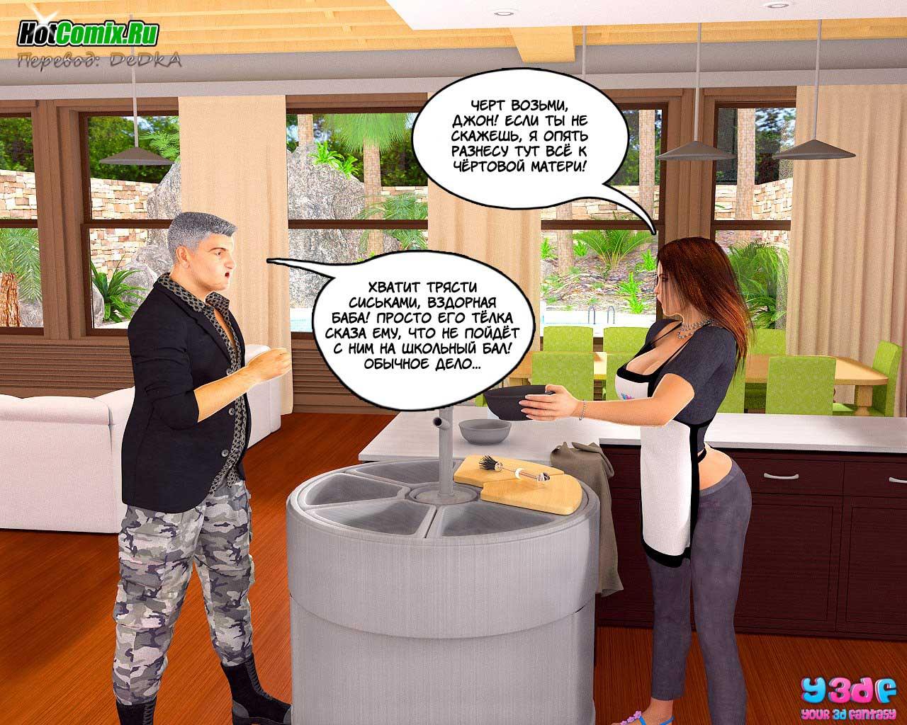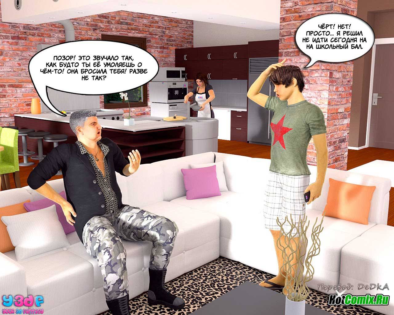 Выпускной бал – всегда стресс и для девочек, и для мальчиков. И если девочек больше волнует покупка платья – то у парней проблемы могут быть посерьезней. Вот и сегодня Эрик даже разругался с родителями из-за предстоящего бала. Мамочка старается поддержать сына и надевает самую короткую юбку, чулки и каблуки – теперь Эрик сможет пойти на бал с ней, чтобы все ему позавидовали. Однако, проблема вовсе не в том, что Эрику не с кем пойти. Оказывается, он просто не умеет танцевать! Конечно, мамочка не бросит его и научит танцевать лучше всех. Вот только дистанция в танце между ними почему-то все время сокращается…