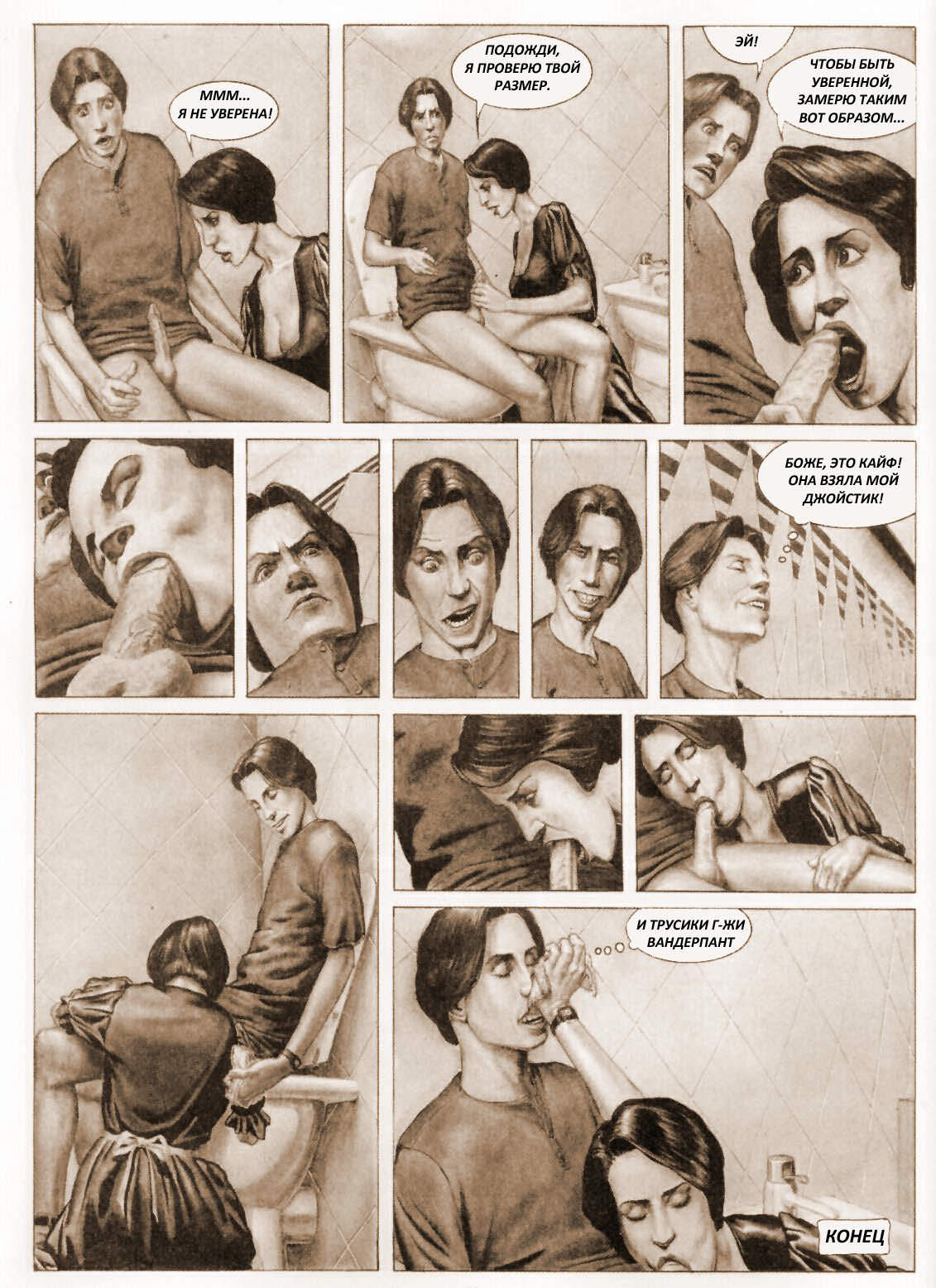 Трусики госпожи ВандерпантТрусики госпожи Вандерпант 28.11.2024 Комментарии Нет комментариев Секс комиксы Заманчивая история с запахом первых юношеских фантазий, первых эрекций и эротических снов. Когда у твоего друга очень горячая мамочка – поход к ним домой становится настоящим испытанием. Сложно удержаться от развратных мыслей и фантазий о сексе с опытной нежной мамочкой. Визит превращается в эротическую муку. Но вот судьба награждает героя – в туалете он находи трусики госпожи Вандерпант. Отличный способ снять сексуальное возбуждение – прямо здесь, в туалете! Главное, чтоб никто не застукал нашего героя за этим порочным процессом. Комиксы по теме: Секс-автобусОтличный комикс для тех, кто любит порно комиксы аниме! Обычный день в обычном автобусе –… Секс-автобусОтличный комикс для тех, кто любит порно комиксы аниме! Обычный день в обычном автобусе –… Секс втроемМуж и его жена (сексапильная блондинка) не могут получить удовольствие от секса друг с другом… Месть через сексКлара каждый день мечтает о диком и необузданном сексе - не каждый мужчина способен дать… Стриптизёрша секс комиксДейв обсуждает с двумя стриптизершами планы на сегодняшний вечер, и, конечно же, амплуа девушек, с… Секс с нечистой силойСимпатичная молодая студентка с рыжими волосами отправилась на пикник. Но вместо лесных зверушек и птичек ей… ДубляжПара молодых любовников трахается, предаваясь всевозможным ласкам. Вскоре к паре присоединяется матюра-брюнетка, которая просит любовников… WREXDСекс на космическом корабле просто необходим. Желательно, чтобы он был по обоюдному согласию. А вот… ↓↓↓ Ништячки! ↓↓↓ Поделись комиксом с друзьями! Как вам комикс? Оцените по 10-бальной шкале! (16 оценок, среднее: 6,25 из 10) Добавить комментарий Отменить ответВаш адрес email не будет опубликован. Обязательные поля помечены *Комментарий *Имя * Email * Сохранить моё имя, email и адрес сайта в этом браузере для последующих моих комментариев.