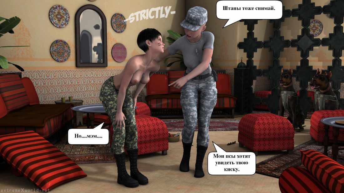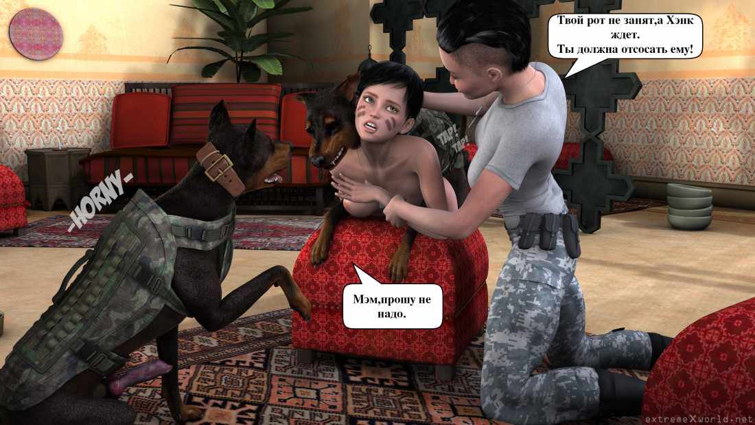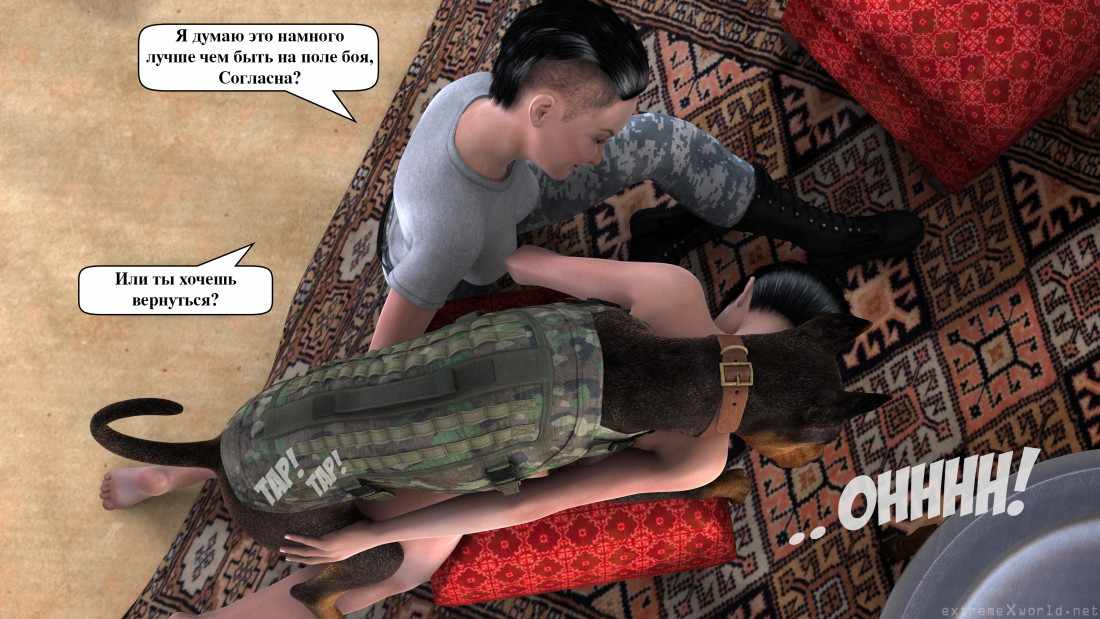 Военная шлюха Часть 2Военная шлюха Часть 2 10.03.2020 Комментарии Нет комментариев 3D Наглая капитанша-развратница снова зовет к себе Перри и требует, чтобы та поехала с ней на отдаленную военную базу №23. Перри боится этой поездки, однако, через три часа она и начальница оказываются на месте. Обе девушки сейчас в роскошной закрытой комнате, где их уже поджидают трое изголодавшихся доберманов: Отис, Лео и Хэнк. Капитанша заставляет подчиненную раздеться и встать раком, а каждый из псов вылизывает ей языком киску и трахает сзади. Судя по тому, как стонет несчастная, псы более, чем довольны. Комиксы по теме: Военная шлюхаДевушка-рядовая Перри испугалась огромного количества крови, трупов и бомб на поле боя и попыталась сбежать.… Шлюха с шестого канала Часть 3Рыжая ассистентка черепашек сидит в своей квартире вместе с подругой, и тут резко раздается звонок… Шлюха с шестого канала Часть 2Рыжая помощница ниндзя-черепашек созналась подробно в том, что это она загрязняла канализацию в городе все… Операция Грендель: часть 2 Операция Грендель: часть 1Наша отважная героиня прибывает на яхте к острову - ей нужно найти подводный туннель, по… Операция Грендель: часть 3Блондинка с яхты успешно пробралась чрез подводный туннель в подразделение Затмения – она пытается найти … Снотворное: часть 2Мать сделала минет сыну, но этого ему показалось мало. Ещё бы! Трудно довольствоваться малым, когда… Снотворное: часть 1Если муж не удовлетворяет супругу и не старается сделать ничего, чтобы его жена кончила, он… ↓↓↓ Ништячки! ↓↓↓ Поделись комиксом с друзьями! Как вам комикс? Оцените по 10-бальной шкале! (12 оценок, среднее: 9,67 из 10) Добавить комментарий Отменить ответВаш адрес email не будет опубликован. Обязательные поля помечены *Комментарий *Имя * Email * Сохранить моё имя, email и адрес сайта в этом браузере для последующих моих комментариев.