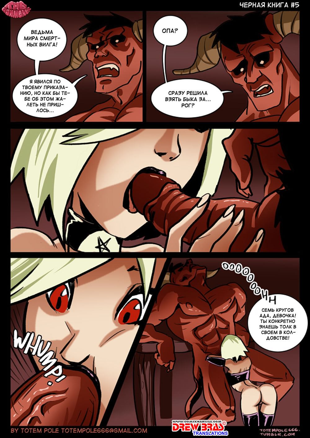Вилга уже устала убеждать Така в том, что все будет хорошо – рогатый дружок, когда-то являвшийся человеком, уже не верит в успех идей этой странной ведьмы. Вилга же, напротив, думает, что нужно просто накопить ещё немного дьявольской силы – а для этого ей нужно получить ещё несколько оргазмов. Вилга уже знает, что лучший способ получить мощный оргазм – вызвать заклинанием мощного рогатого демона из преисподней и хорошенько насесть на него пока он будет разбираться, что к чему.